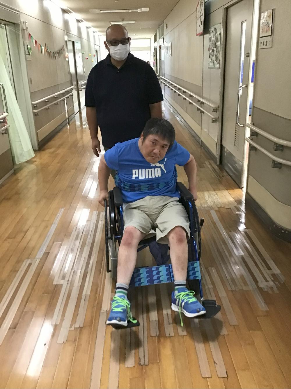 〇廊下を車イスで自走している方もいらっしゃいました。頑張っています!