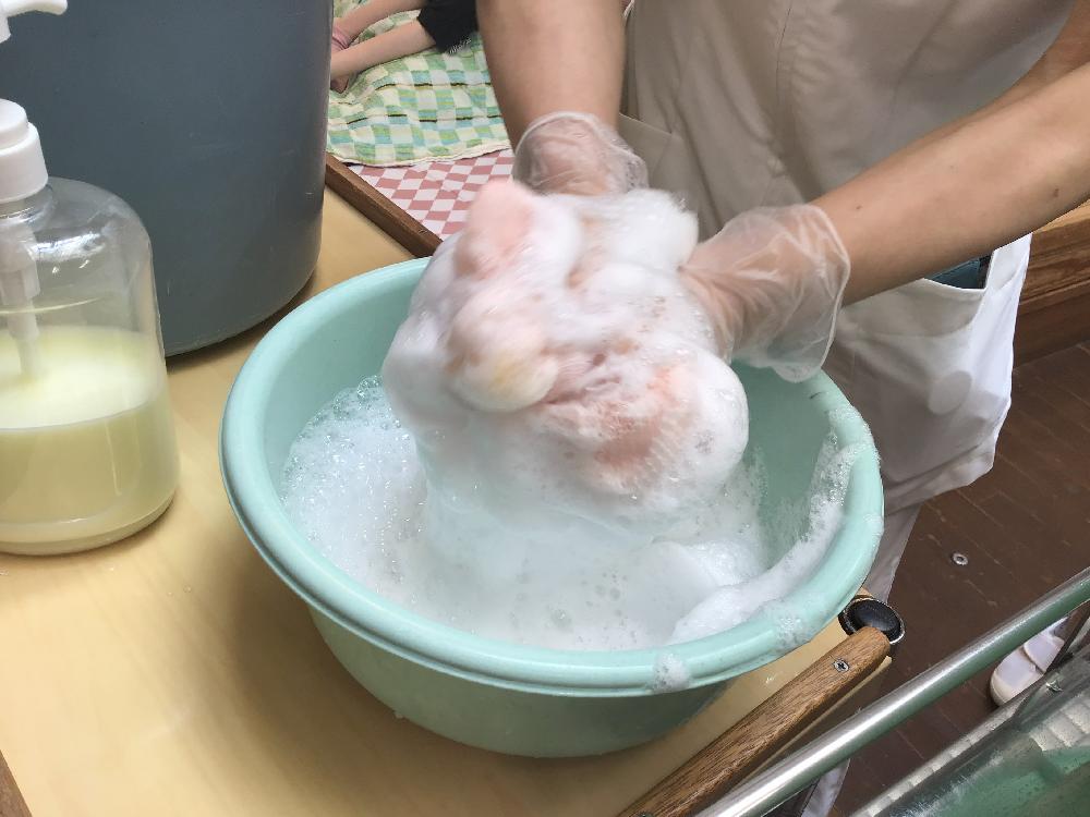 〇ボディソープをお湯で泡立てて…ビニール袋に入れまして…