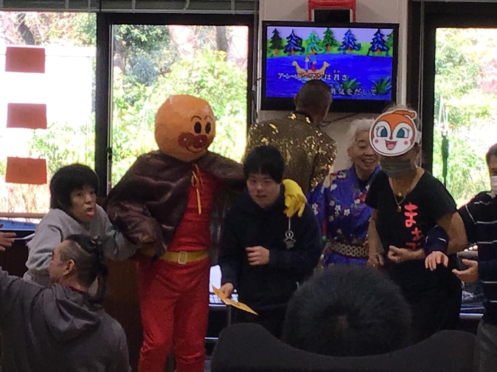 ○アンパンマンも登場して、利用者様も大興奮。一緒に記念撮影もしました。