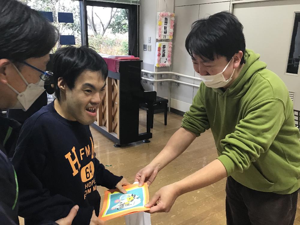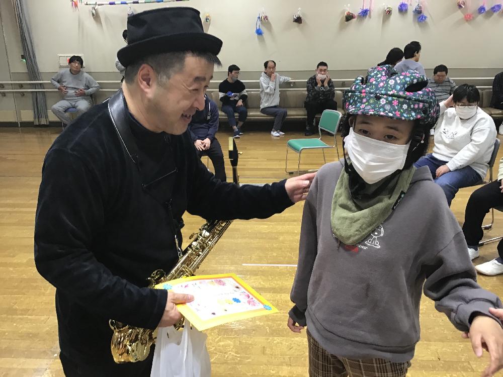 〇演奏のお礼に利用者様から手作りのお礼状と記念品の贈呈が行われました。