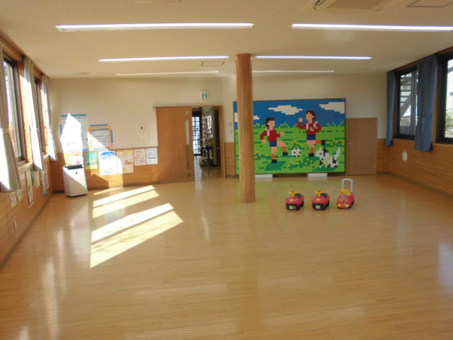 木のぬくもりが感じられるログハウス風の建物です。落ち着いた雰囲気のなかで、安心して遊ぶことができます。