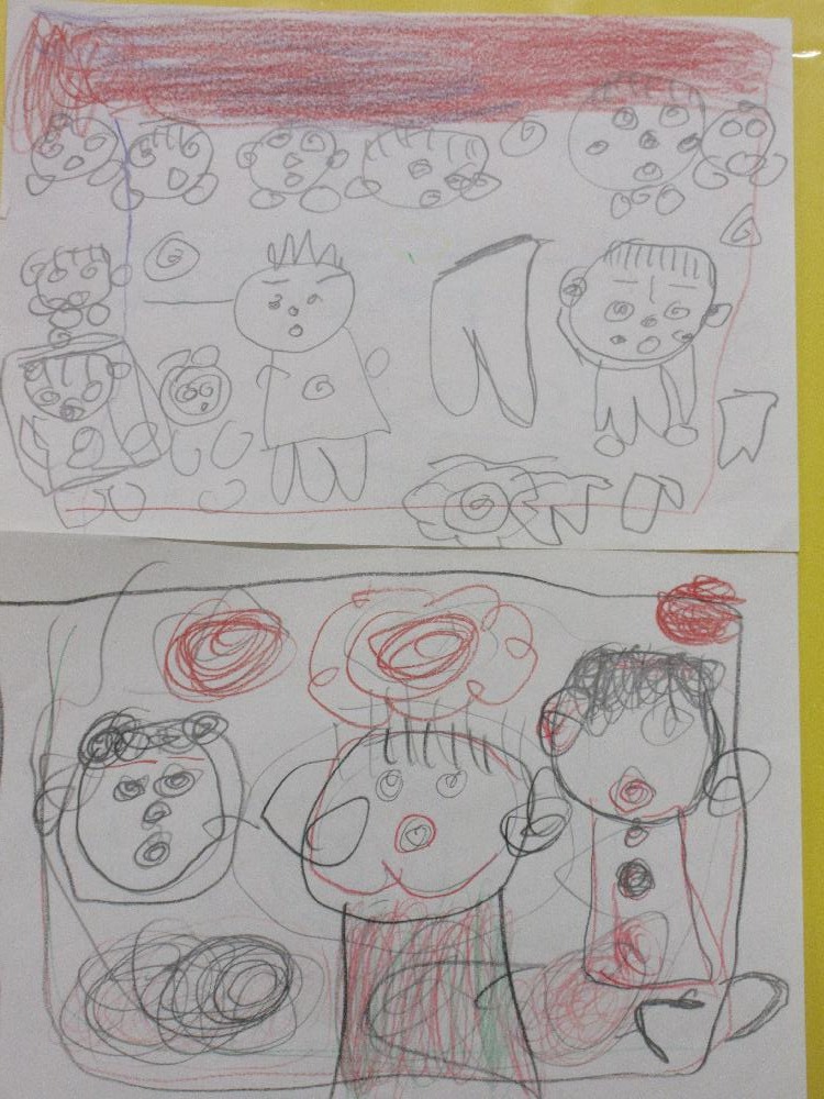 作品名:楽しいおともだち 作者名:佐藤ルツ子 作品紹介: あふれ出るおともだちとの楽しい思い出を描きました。ひとりひとり誰を描いたのか思い出とともに話してくれました。