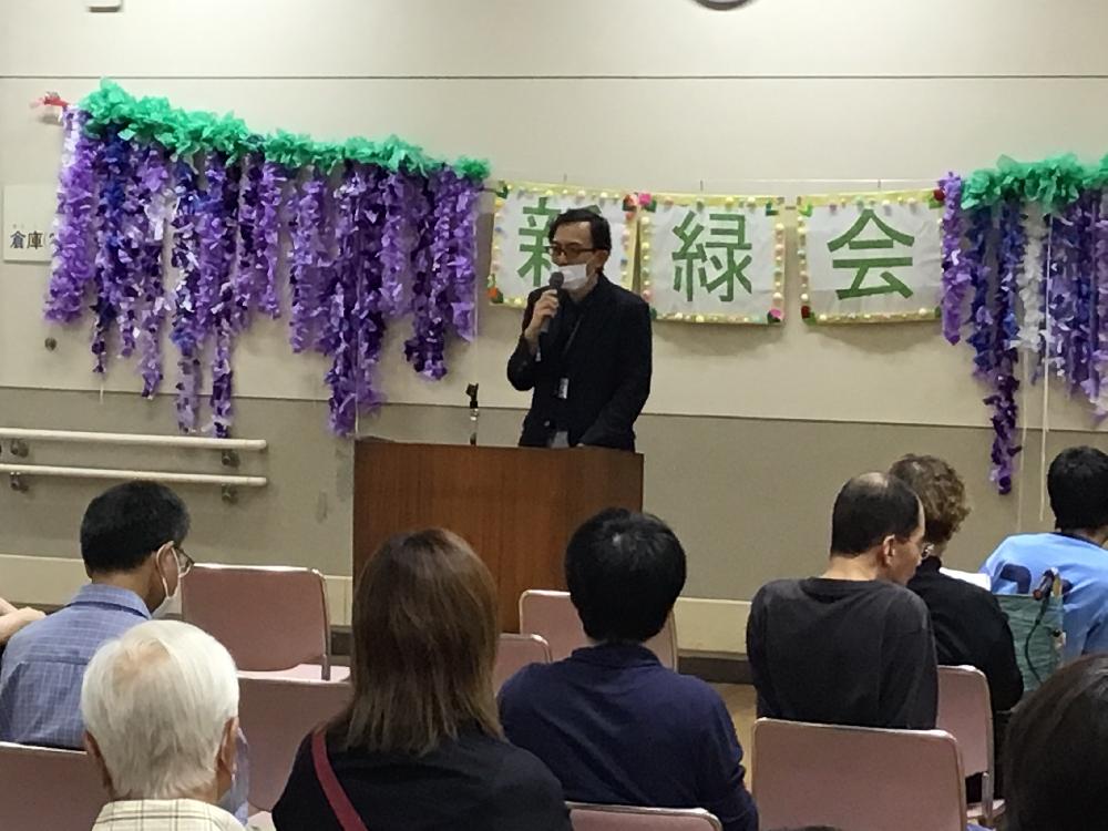 ○春光園けやき園長から挨拶「皆さん、今日一日新緑会を楽しみましょう!」