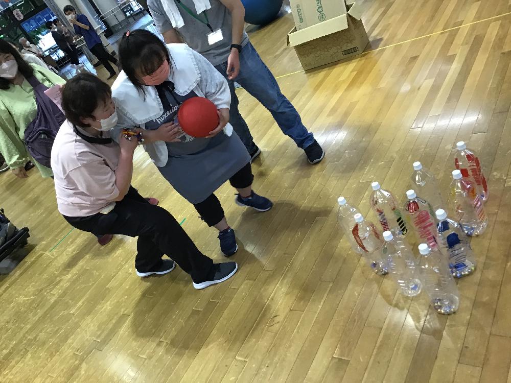 レクリエーション「缶つみゲーム」「ボウリング」「わなげ」「園内イラストさがし」