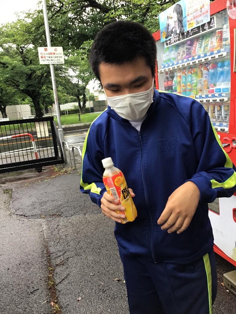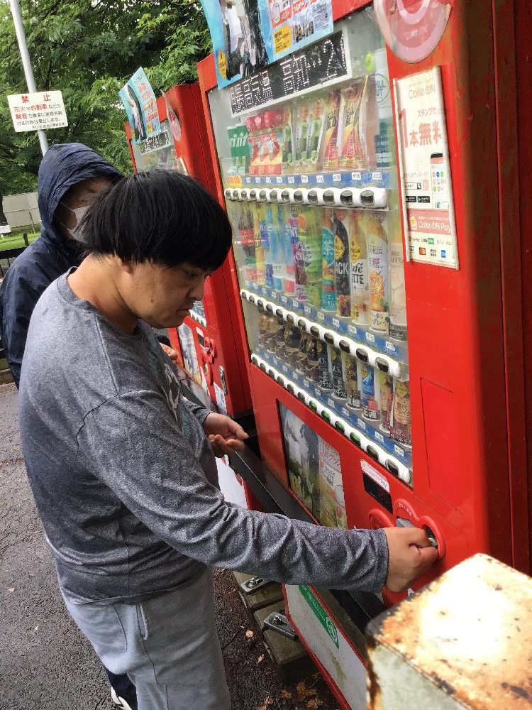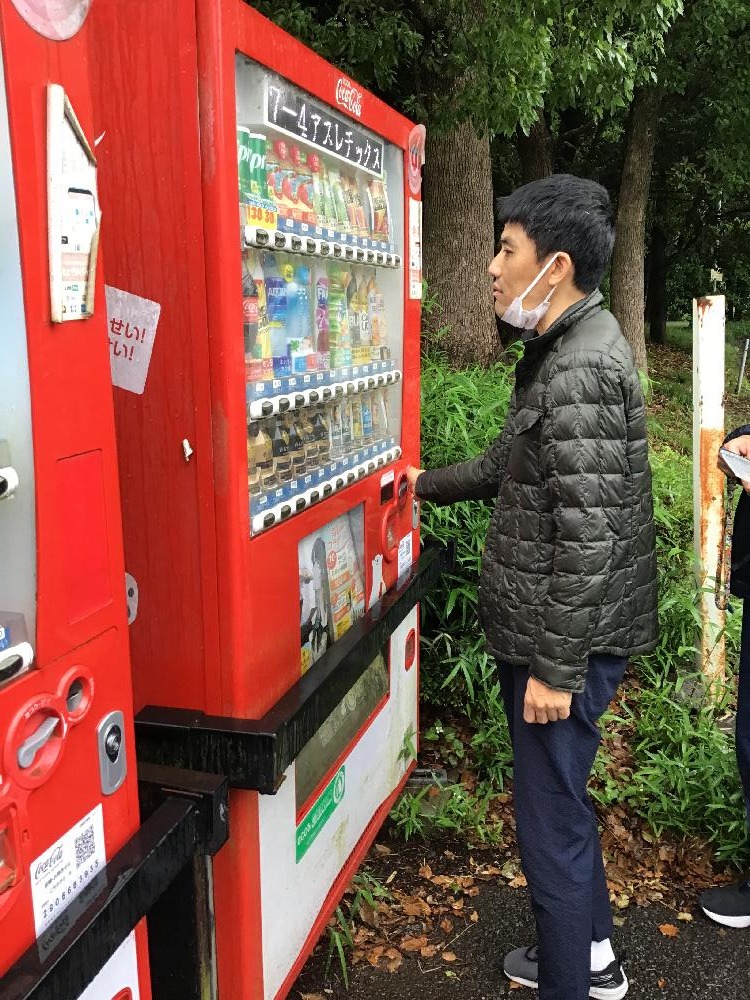自販機で購入して、ちょっと一息。傘に新緑と言えば、気分はトトロ…かも?