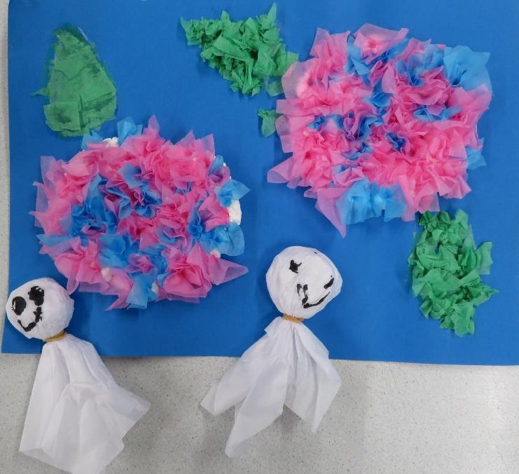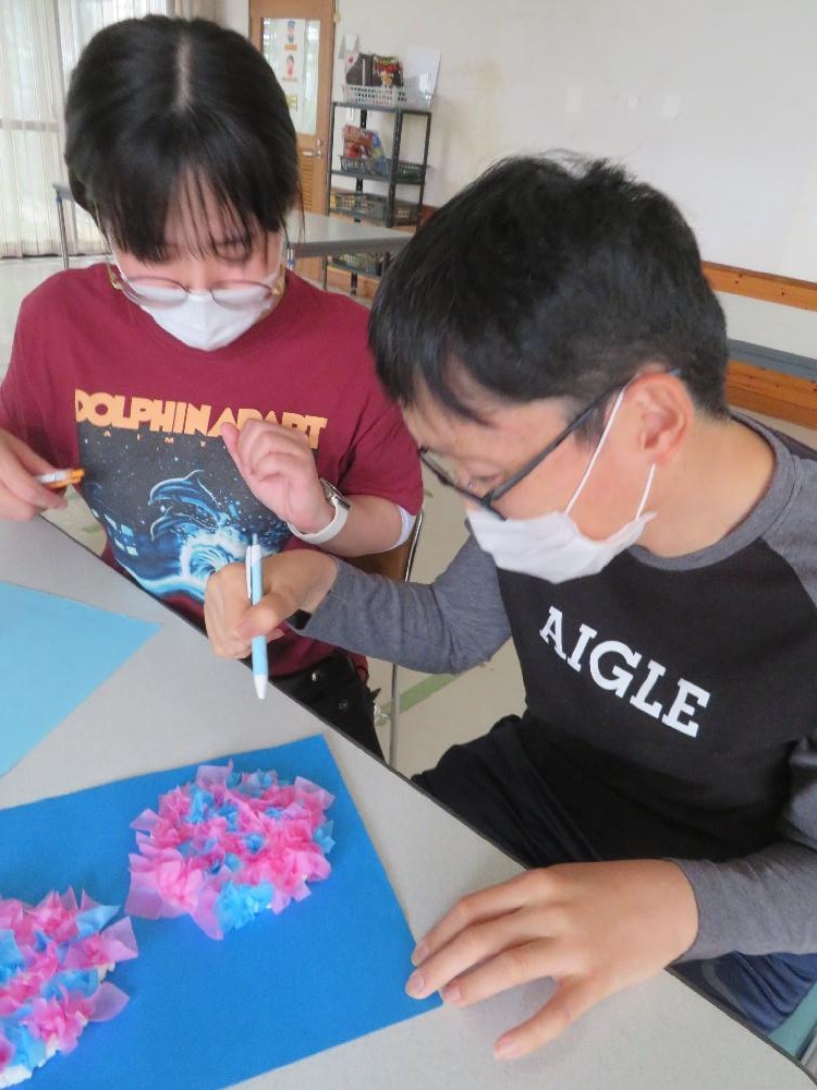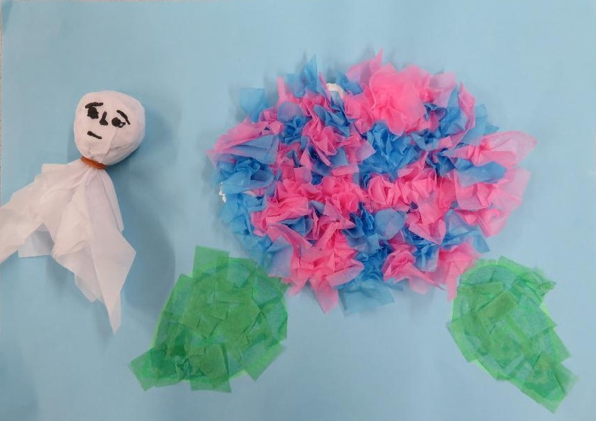 他にも、画用紙に色鮮やかに貼り付けるあじさいも完成しています。