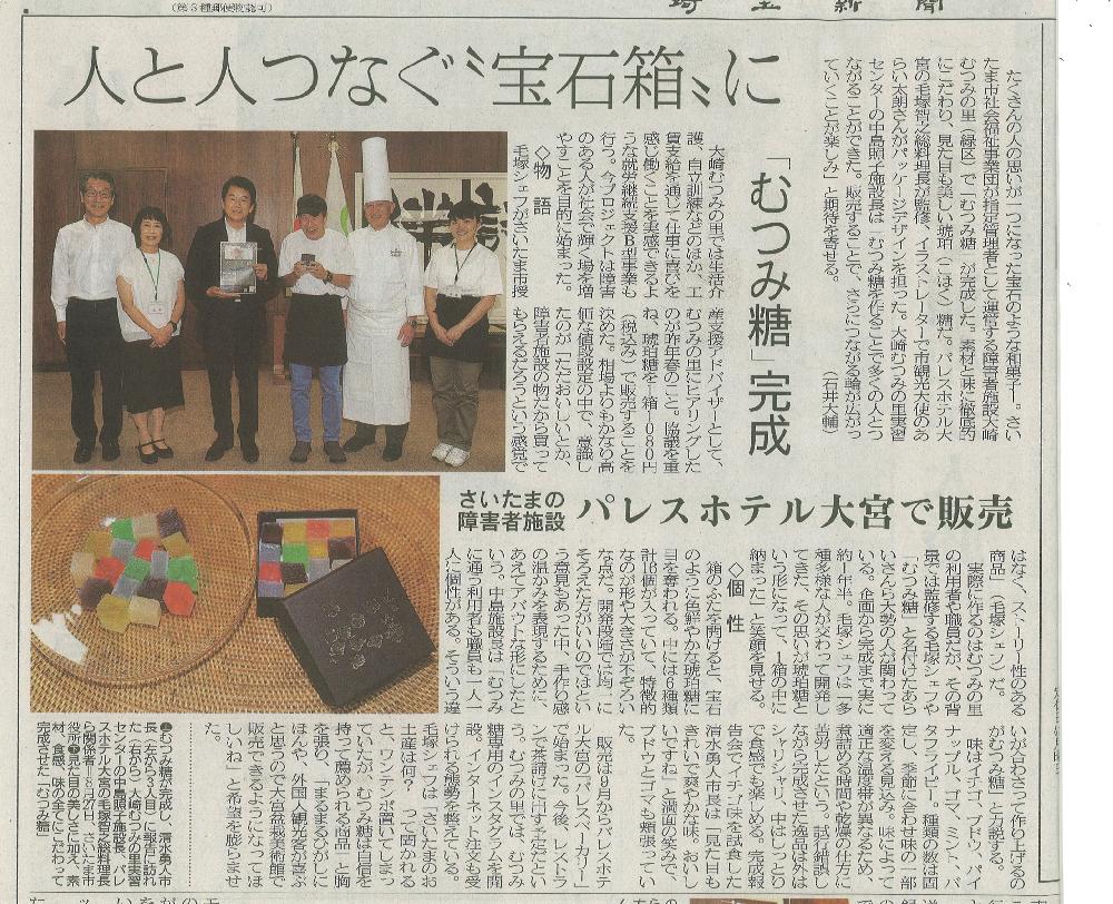 【むつみ糖】埼玉新聞に掲載されました|お知らせ お知らせ 動画紹介 作品展 自主製品 採用情報 お知らせ NEWS お知らせ【むつみ糖】埼玉新聞に掲載されました 2025.09.16 事業団からのお知らせ施設からのお知らせ新着情報 【むつみ糖】埼玉新聞に掲載されました 大崎むつみの里の自主生産品『むつみ糖』について、令和7年9月15日付埼玉新聞に掲載されました。 テーマ: お知らせ新着情報 関連施設: 大崎むつみの里第1事業所(大崎実習センター) 一覧へ戻る CATEGORY 事業団からのお知らせ 施設からのお知らせ 新着情報 イベント 採用情報 その他 ARCHIVE 2026 2025 2024 2023 2022 テーマ お知らせ 新着情報 採用情報