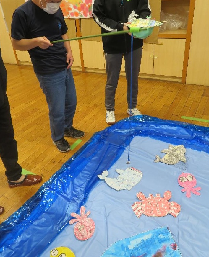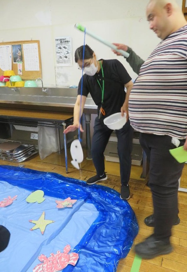 次に魚釣りです。魚も利用者の方々に作っていただいたものです。