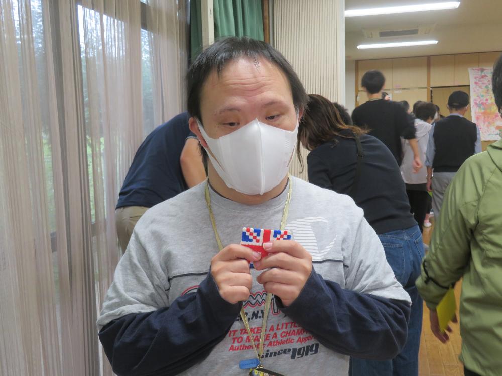 今回の景品は、槻の木で作った自主製品(アイロンビーズ)です!