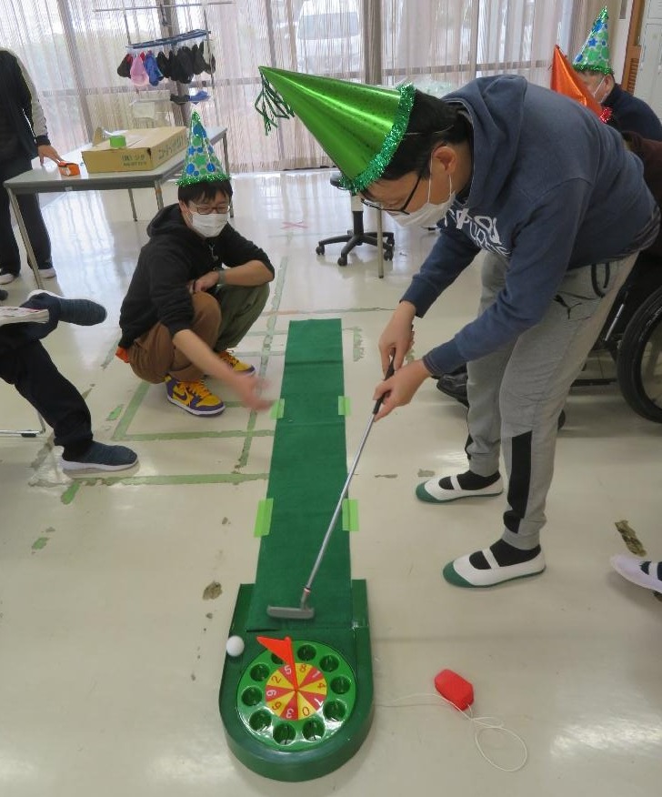 (槻の木)お楽しみ会|お知らせ お知らせ 動画紹介 作品展 自主製品 採用情報 お知らせ NEWS お知らせ(槻の木)お楽しみ会 2026.01.23 施設からのお知らせ新着情報 (槻の木)お楽しみ会 お楽しみ会でパターゴルフを行いました! ご自身で好きなカラーの帽子を選んでいます。 順番が来るとボールに集中し、ホールを狙って打っています。 ホールが沢山ありますが、回っているので少し難しいです。 周りの方が応援している姿もありました。 点数を競い合い、皆さん楽しんでいました! テーマ: お知らせ新着情報 関連施設: 槻の木 一覧へ戻る CATEGORY 事業団からのお知らせ 施設からのお知らせ 新着情報 イベント 採用情報 その他 ARCHIVE 2026 2025 2024 2023 2022 テーマ お知らせ 新着情報 採用情報