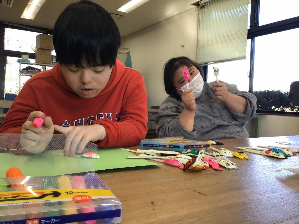 ○うみグループの様子です。創作活動でスプーンアートを行っています。
