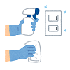 リハビリ室の訓練器具・全館の手すり・エレベーターのボタン・洗面所・ドアノブの消毒