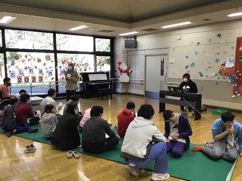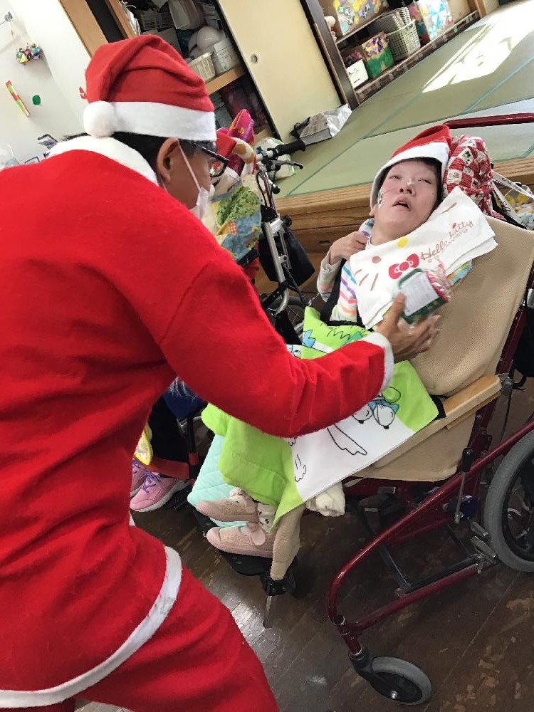 2023年最後のお楽しみ、『年忘れ会』が行われました。サンタクロースが利用者の皆様の前に颯爽と現れ、プレゼントを配ると皆様とてもお喜びになり、笑顔があふれていました。