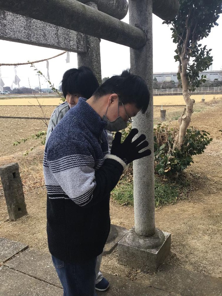 ○かぜグループの様子です。園のご近所の神社で「元気に過ごせますように!」