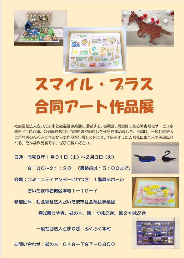 春光園けやきは、開催中の合同アート作品展『スマイル・プラス』に