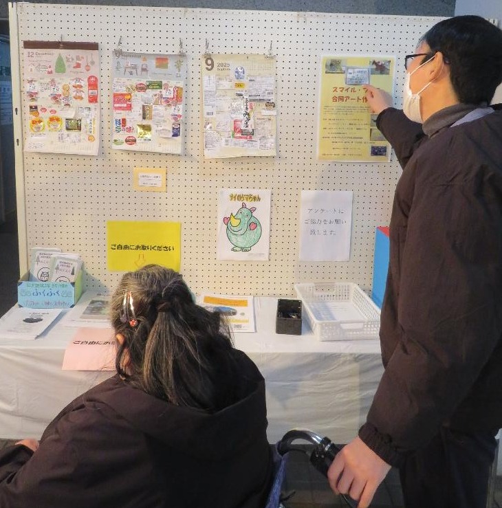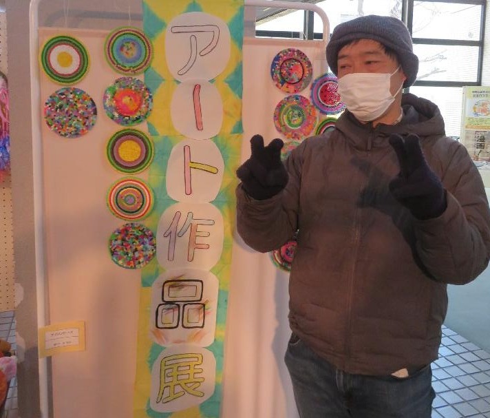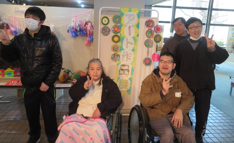 コミュニティセンターいわつきで開催された「スマイル・プラス合同アート作品展」に、ご本人様を連れて見に行きました!