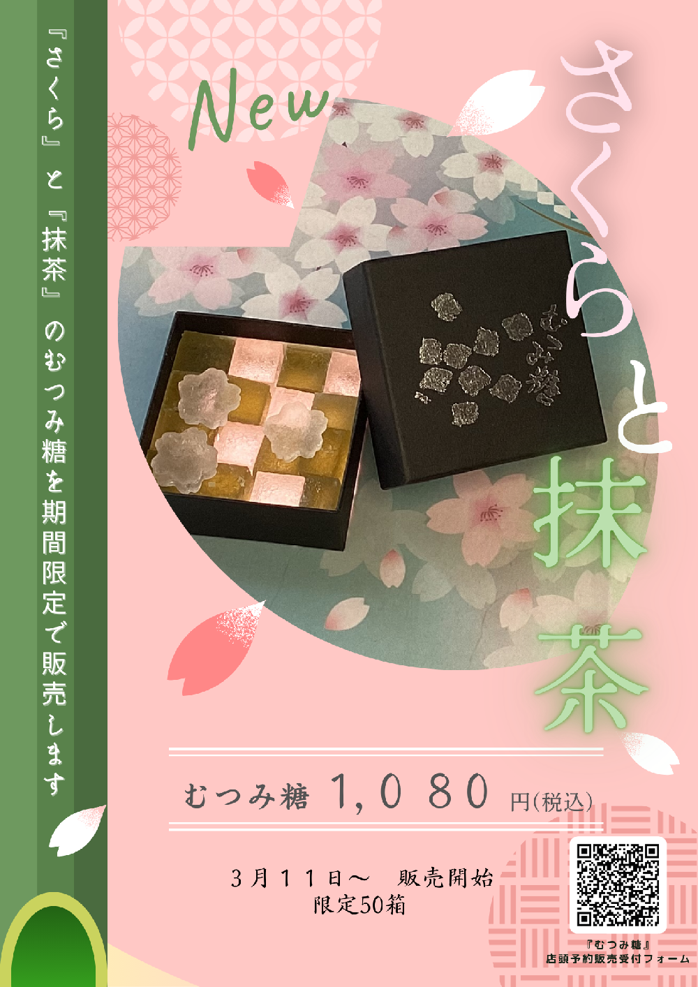 春らしく、さくらと抹茶の味でご用意しました。