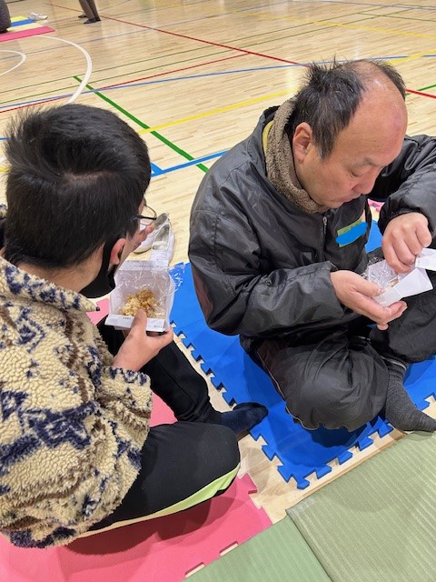 アルファ米調理や防災食器づくり、防災ビンゴ大会等を行いました。