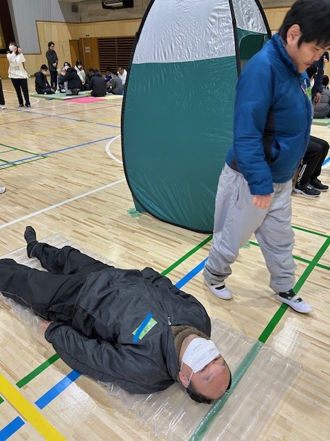 大学の教職員さん、学生さんのご協力のもと災害時の備えについて学びました。